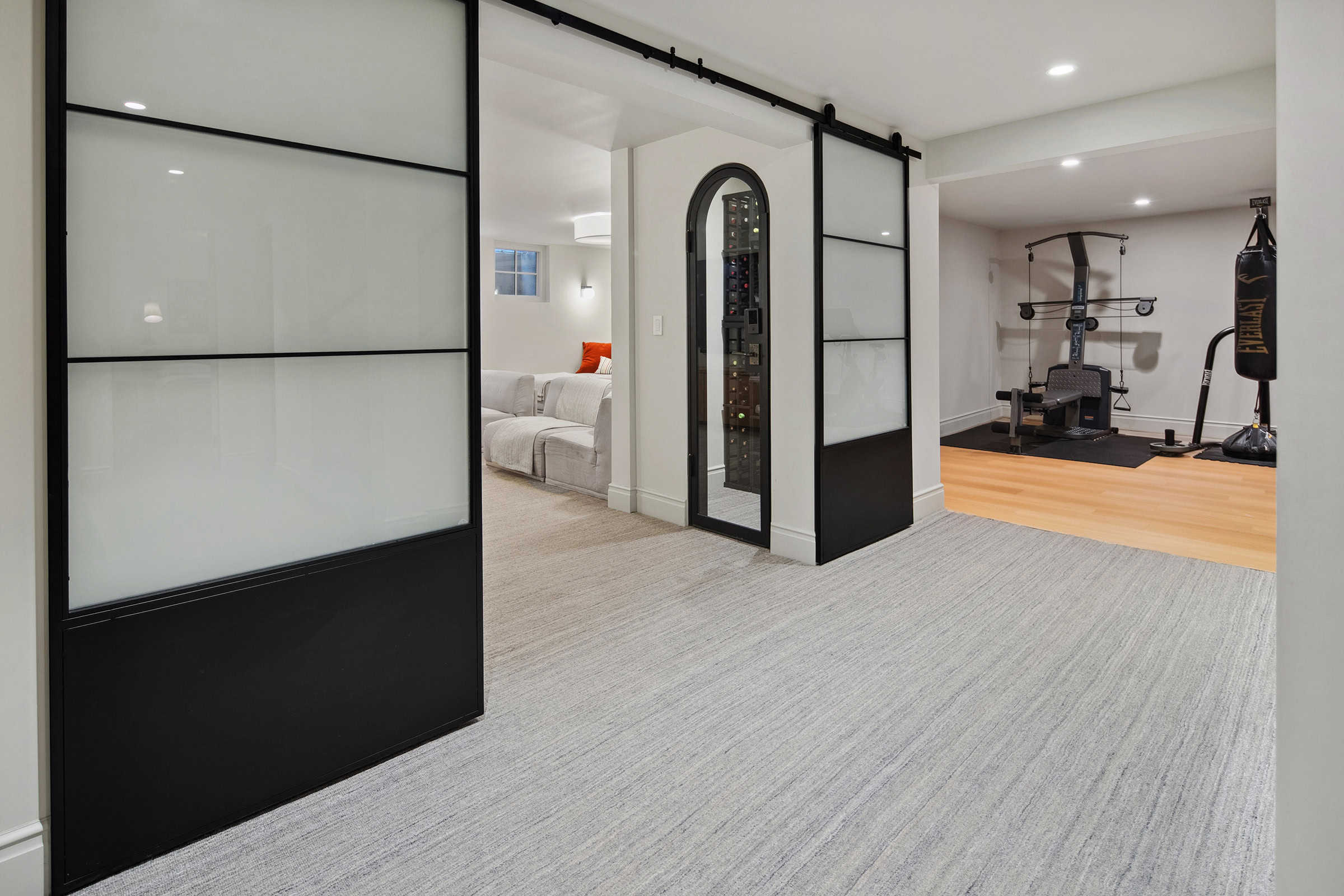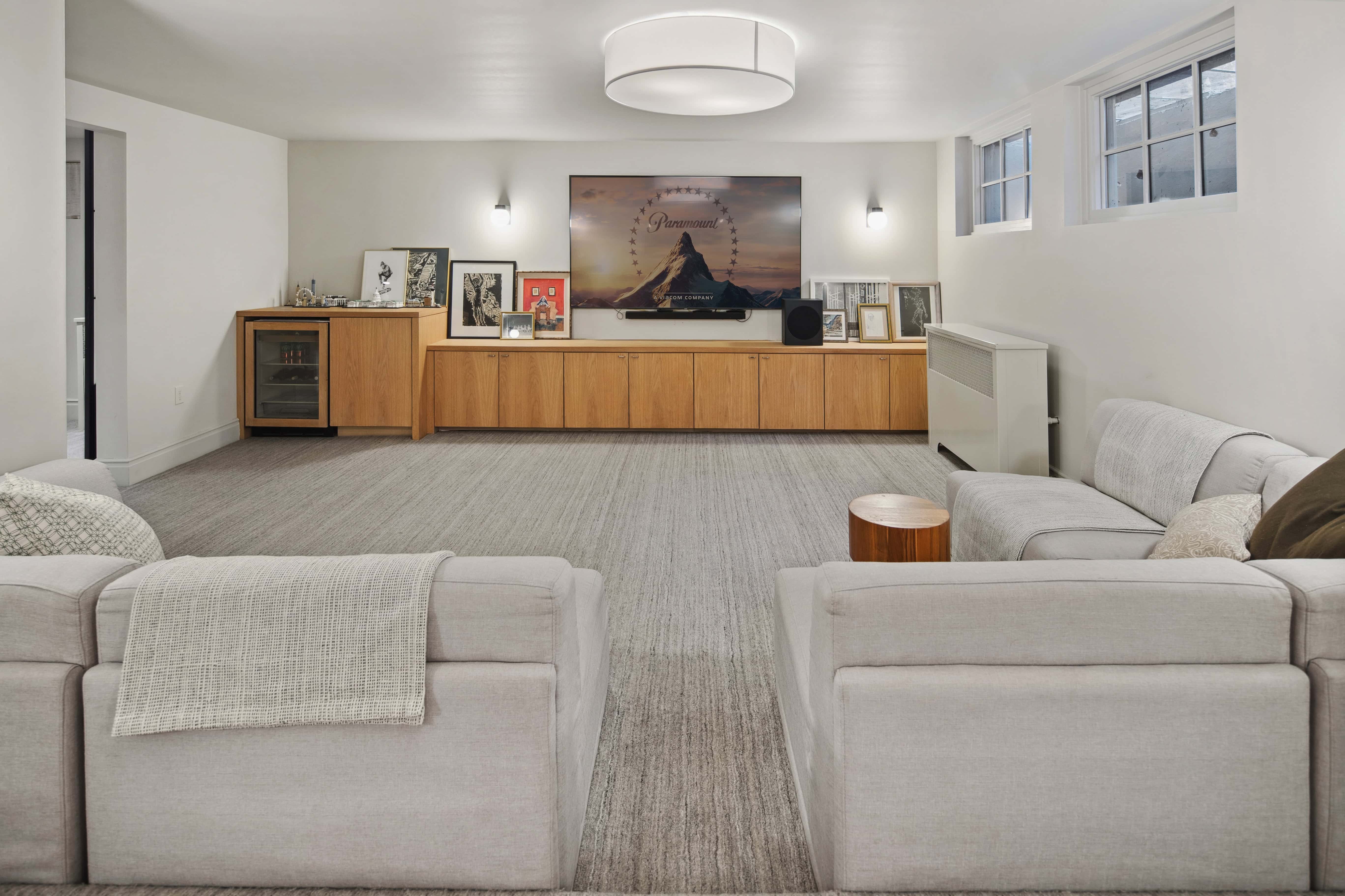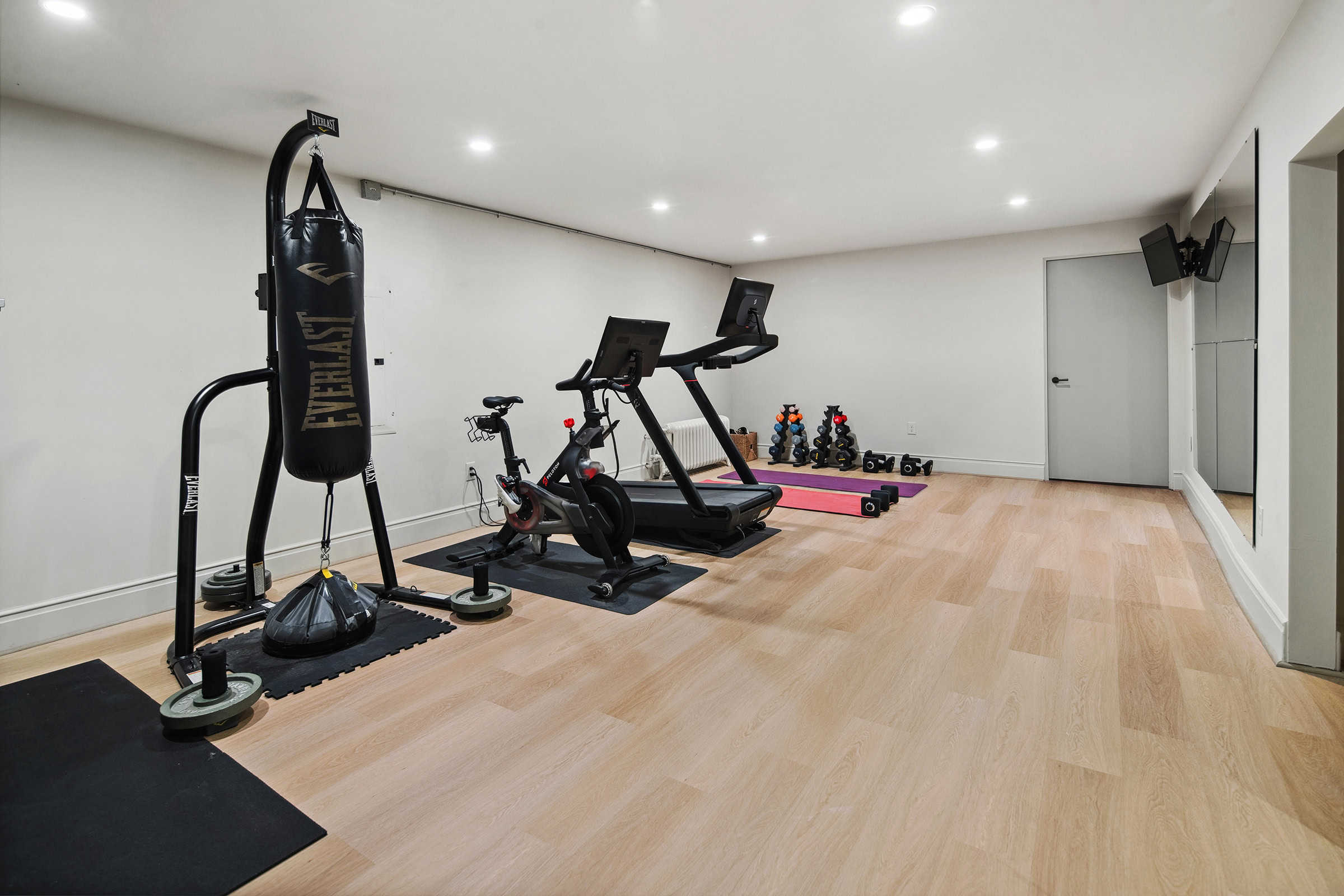 Upstairs, the primary suite features dual marble vanities, a deep soaking tub, a Mr. Steam rain shower, and a generous walk-in closet. Three additional bedrooms, a laundry room, and a private deck overlooking the backyard complete this level, while a spacious top-floor bonus room with full bath offers flexible space for guests or recreation. The lower level caters to leisure and wellness with a theater room, wine storage, a home gym, and a guest suite with full bath.